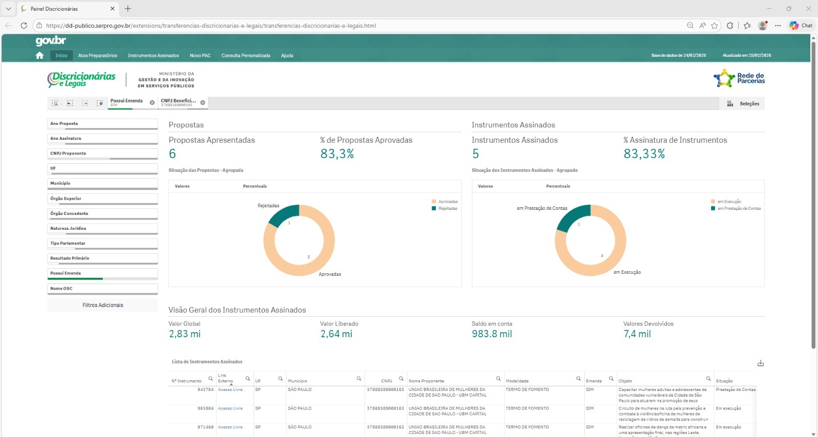 Situação da prestação de contas da parceria: 25/08/2025